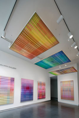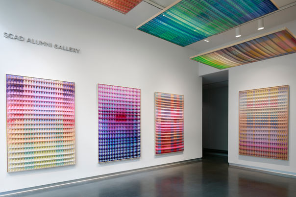 Artist Anya Molyviatis (B.F.A., fibers, 2021) showcases a new series of her hallmark three-dimensional weavings within a site-specific installation that envelops the space in dynamic multicolor gradients and evokes the complexity of her process on the loom. Redefining a centuries-old weaving practice, Molyviatis invents ethereal textile works woven with intricate waffle patterns that leverage the curiosities of color theory and invite new dimensions into the viewer’s perception.